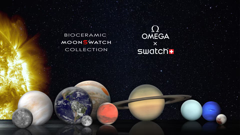 Criada em colaboração com a OMEGA, a Coleção Biocerâmica MoonSwatch é uma versão lúdica e realista do lendário Speedmaster Moonwatch da OMEGA, o primeiro relógio a pisar na Lua. No entanto, o que impulsiona esta coleção para o espaço é a fusão do inovador material Biocerâmico em cores raras com elementos-chave de design do Speedmaster Moonwatch.