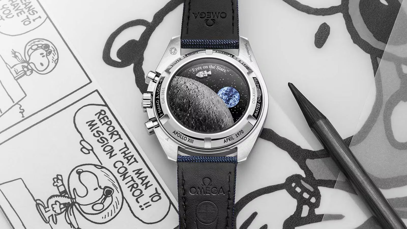 Mais que um relógio, um pedaço da história da exploração espacial. Criado em homenagem à missão Apollo 13, o Speedmaster Snoopy celebra o momento em que a precisão da Omega ajudou a trazer astronautas de volta em segurança.