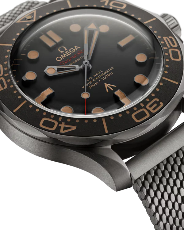Criado lado a lado com Daniel Craig para o filme Sem Tempo para Morrer, o Seamaster Diver 300M 007 Edition carrega no seu design a essência do agente secreto. O titânio de grau 2 garante leveza e resistência em missões extremas, enquanto o mostrador castanho tropical traz um ar vintage, remetendo à elegância atemporal de Bond. Mais fino e confortável que os modelos tradicionais, este ícone foi pensado para ação, estilo e discrição — exatamente como 007.